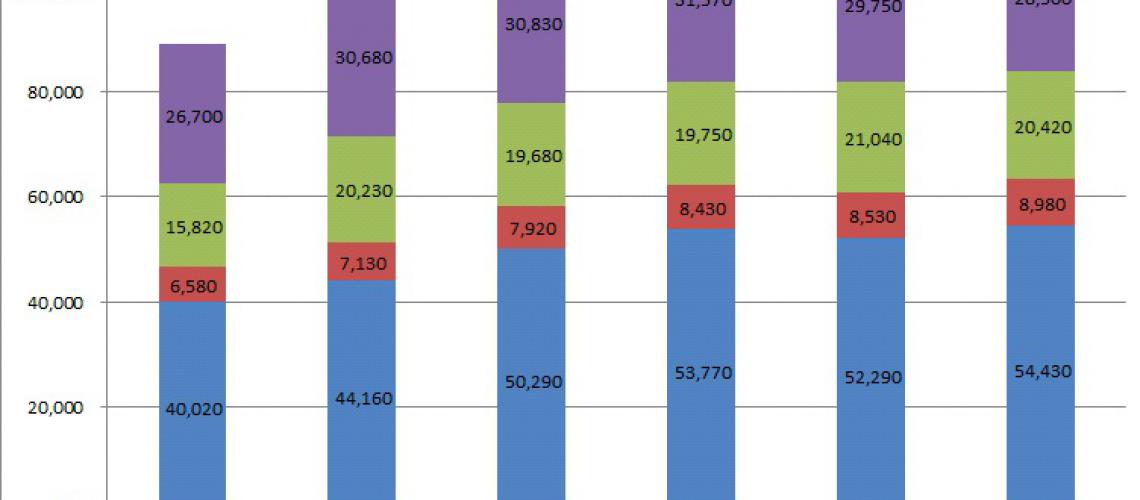 The graph above shows the outcomes of homelessness decisions across the whole of England, by year. This divides people who apply into four "main" groups which summarise a complex system of judging whether the person is "statutorily homeless" or not. They might be:
